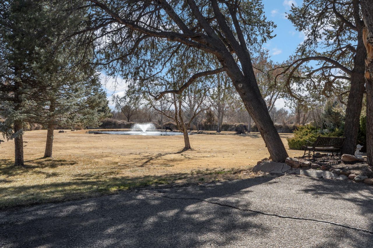 Adobe hacienda on 2.4 acres in a private park like setting. Gated entry, adobe guest house, in ground pool in a cabana setting, enyoy the large pond w/ back drop of Sandia Mountains. Enter main home from a large portal w/ kiva FP into spacious & gracious living room, formal dining, both w/ kiva FP's. Comfortable kitchen w/ island nook, custom cabinets & sitting room w/ FP, service room w/ more cabinets & sink. Step down into the huge family room w/ Kiva FP & access to outside courtyard & yard. Primary BR suite is private w/ Kiva, garden bath, walk in closet. Large BR's, baths, & hallways! Separate guest house, FP, kitchen, kiva FP, sauna, access to cabana pool area. City water & sewer, irrigation well. Workshop, storage, & what a fabulous home to love, grow into & enjoy!