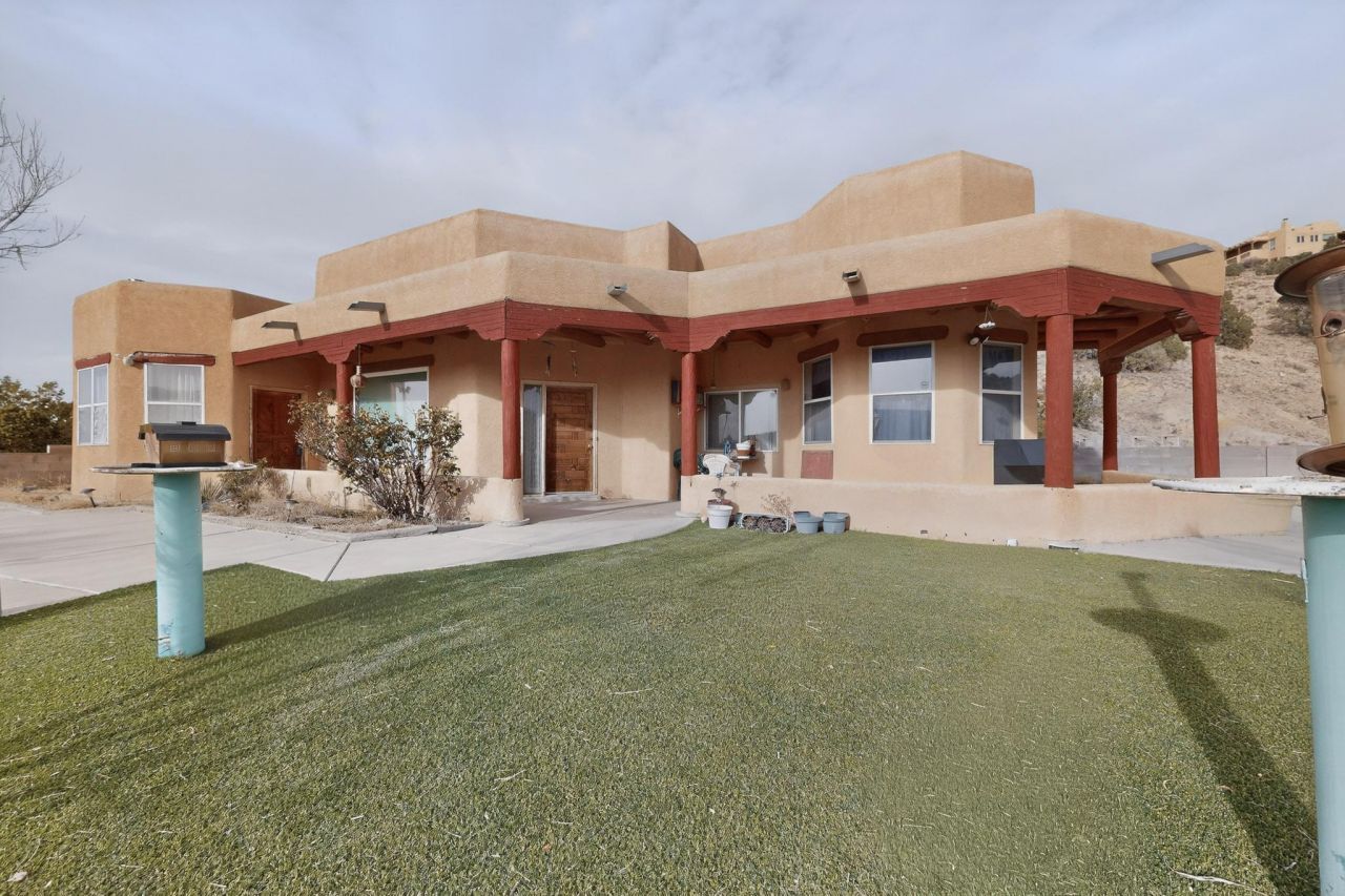 Desert potential meets unrivaled views. Opportunity is knocking at this custom-built 1999 Pueblo style home. Nestled on over 2 hillside acres for ultimate privacy, this 3-bedroom home features two full, and two half baths. Offering a generous floor plan ready for a modern transformation. For the discerning buyer and visionary contractor, this is a rare chance to craft a true architectural showpiece. With sweeping vistas and an easy commute to both Santa Fe and Albuquerque, the potential here is simply exceptional.