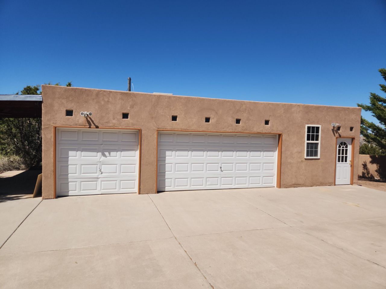 3 BDRM + OFFICE + HUGE WORKSHOP/GARAGE! $580,000. Quiet location, convenient to Highway 165, this 3 bedroom + office is move-in ready! New kitchen appliances and new tile & carpet! Single level 2,315 sq ft home, with Sandia views from living, dining, breakfast nook, kitchen & primary bedroom. Southwest style home with (attached) 2 car garage PLUS 971 sq ft (detached) workshop/3 car garage - great for artists, car enthusiasts, extra storage, etc! Comfortable floor plan with office (and half bath) just off the front entry. Primary bedroom has walk-in closet. Skylights give this home wonderful natural light! Gas log fireplace in the spacious living room and pellet stove in dining. Brand new septic tank. Less than a 1/2 mile from Hwy 165 & only a 20 minute drive to Albuquerque! No HOA!