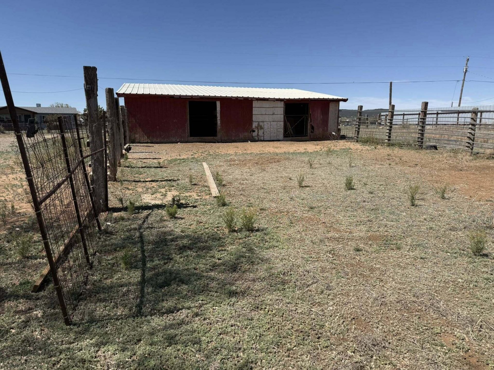 Spacious Double Wide with wood laminate floors, white cabinets, metal roof. Barn is 40X37 with 3 stalls,. Property is fenced & gated, a storage shed, back deck. Large property. Washer/Dryer do not convey. Price reflects being sold AS IS. Inspections are for buyer knowledge only. Seller prefers Lisa Ortega at Old Republic for closing.